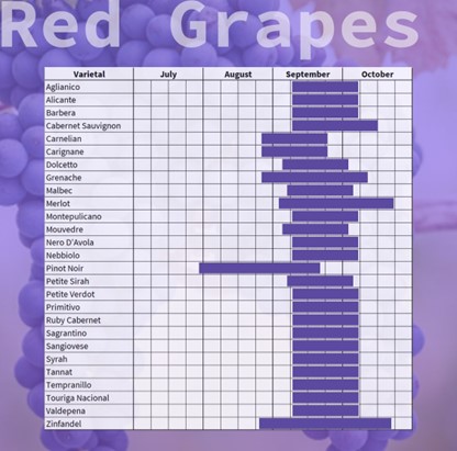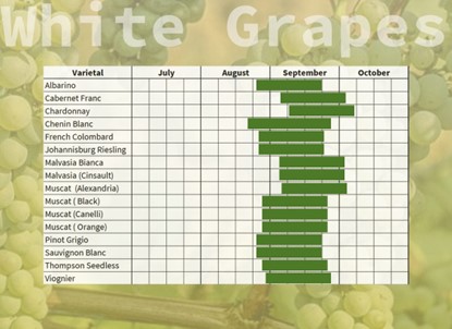 Central Valley, CA- Things are starting to ripen in CV as well! We are seeing the Black Muscat, Muscat, Sauvignon Blanc, Grenache Blanc, and Teroldego start to creep up in sugar. I will have more updates as the specific numbers roll in.
