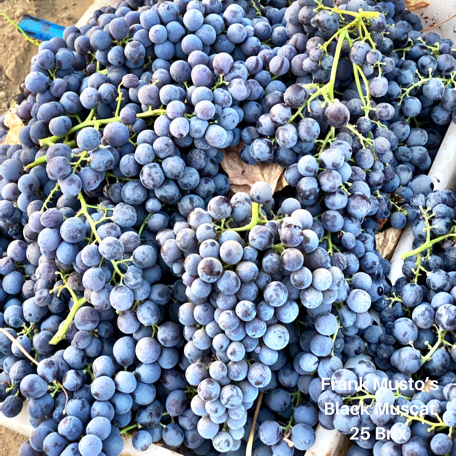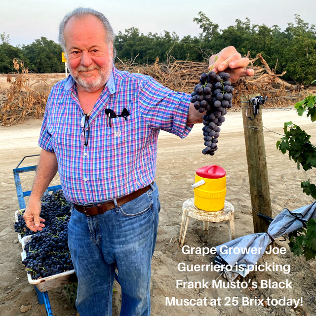 Grower Joe Guerriero is picking and packing Frank Musto’s Black Muscat today! The grapes are coming in at 25 Brix and they will be here soon!